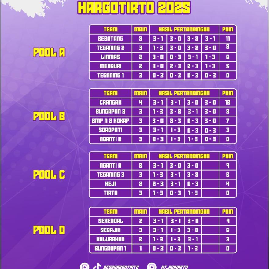 Hargotirto, 22 September 2025 – Turnamen Pekan Olahraga Kalurahan (Porkal) Hargotirto 2025 akhirnya memasuki babak 8 besar. Malam tadi, Minggu (21/9), menjadi laga penentuan tim-tim dari berbagai padukuhan yang berhasil lolos setelah melalui fase penyisihan yang cukup ketat.